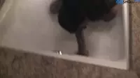 The scene opens up with the stunning and sultry ebony babe taking a relaxing bath in her luxurious bathtub.She has filled the tub with an abundance of foam which adds to her erotic allure.Her dark chocolate skin glistens under the warm water, accentuating her natural beauty even more.As she sits submerged in the foamy waters, she lets out a small moan of pleasure, signaling that its time for some action.Her fingers glide through the thick bubbles, trailing up towards her supple breasts which are adorned with large, perky, and juicy boobs.She fondles them with love and admiration, pinching and pulling on her erect nipples which ache for attention.Her hands then dive deeper into the foamy waters, searching for the center of her lust a bright red rubber dildo.As she retrieves it, theres an undeniable sense of hunger in the air.She positions herself over the rubbery penis, and with her legs wide open, starts to ride the toy in a wild, animalistic fashion.The water splashes everywhere as she grinds herself on the dildo with furious enthusiasm.Each stroke brings her closer to an explosive climax.Her eyes are closed tight, focusing solely on the pleasure radiating through her body.Her pussy is slick and wet from the water and her arousal, further lubricating the rubbery invasion.The foamy tub now holds traces of her arousal and desire, a testament to her intense lovemaking session.With her orgasm building up within her, she lets out a deepthroated moan which resonates throughout the bathroom.The erotic tension reaches its peak as the womans climax is finally reached.Her body jerks spasmodically against the rubber dildo, riding it with powerful, unrelenting fun.The sex scene ends with her collapsing back into the tub, utterly spent from the intensity of the encounter.The foam now tinged in the afterglow of passion, as she gently caresses her sensitive body, bringing herself down from the euphoria of her climactic release.